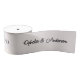 Elegant personalised wedding ribbon featuring a classic pearl white background with alternating monogram and full name text in stylish black script and serif fonts. Perfect for adding a refined and custom touch to wedding favours, gift wrapping, décor, or event packaging. This repeating text design provides a seamless, luxurious look while offering full customisation for initials and names. Ideal for weddings, anniversaries, engagements, or special events, this timeless ribbon design complements a wide range of colour schemes and celebration styles with its clean, romantic aesthetic.