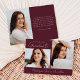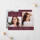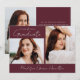 Announce your graduate's achievements and plans with this stylish, modern photo graduation announcement. The front of the announcement displays 2 photos - 1 horizontal and 1 vertical photo. "Graduate" is displayed in a trendy, handwritten white script with a maroon background. Personalise the maroon graduation announcement with the year and the graduate's name. The announcement reverses to display an additional photo with your custom text in white lettering. This 3 photo graduation announcement is perfect for high school or college graduations.