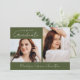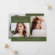 Announce your graduate's achievements and plans with this stylish, modern photo graduation announcement. The front of the announcement displays 2 photos - 1 horizontal and 1 vertical photo. "Graduate" is displayed in a trendy, handwritten white script with an olive green background. Personalise the olive green graduation announcement with the year and the graduate's name. The announcement reverses to display an additional photo with your custom text in white lettering. This 3 photo graduation announcement is perfect for high school or college graduations.