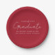 Elevate your graduation party decor with our stylish graduation paper plates! Featuring a chic handwritten white script and red background, these paper plates add a touch of sophistication to your celebration. Personalise them with the graduate's name, graduation year, and school name. Whether you're serving snacks or drinks, these plates are perfect for adding a personalised touch to your high school or college graduation party. Celebrate your graduate's achievements in style with our graduation party paper plates!