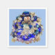 Celebrate the Jewish holidays and winter season with these beautiful paper napkins. What a beautiful touch to your holiday celebrations and family gatherings during the Festival of Lights. This modern design features a happy snowman wearing a blue velvet top hat with a Star of David on the brim, earmuffs, mittens, and a blue striped scarf. The wreath contains beautiful snowflakes, poinsettias, icicles, and the Star of David in various designs. The plaque in the middle includes the inspirational message: "Scatter kindness like snowflakes." The background is a beautiful coordinating blue colour. Available in cocktail, luncheon, and dinner sizes. Sold in sets of 50. Wreath photographed at the Festival of Trees, Orlando Museum of Art, by Glenda Motsavage, travel writer and author.