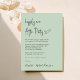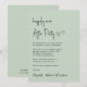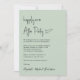 Chic light sage green wedding reception invitation with "Happily Ever After Party" in a minimalist modern script. Easily personalise your invitation and add your names in a signature-like script.