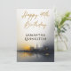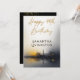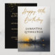 A Modern Happy 40th Birthday Party Invitation designed with a city scape in black and gold and the text: Happy 40th Birthday with the NAME. The reverse text includes: Please Join Us As We Celebrate, The Date and Time, The Location Name and City, and Your RSVP Details. To personalize, simply insert your event text into our easy template, replacing the sample. This invitation is available in both Print and Download.