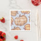 This charming and whimsical party napkin is perfect for a fall birthday celebration. It features a delightful blue and white polka dot background with adorable orange and brown pumpkins painted in watercolour. You can personalise it with the birthday child’s name and birthdate, making it a unique addition to your autumn-themed kids’ birthday party. Ideal for adding a touch of cuteness and elegance to your fall festivities.