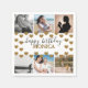 Beautiful happy birthday name script 6 photo collage with gold hearts design.