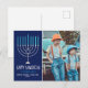 Modern Happy Hanukkah Family Photo Blue Postcard