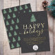 Corporate Logo Happy Holidays Christmas Business Holiday Card Elegant Gray and Gold Foil Watercolor Woodland Pine with festive lights Design