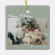 Personalised sage green holiday photo ornaments are a beautiful way to create meaningful keepsakes that celebrate family memories during the festive season. This square ceramic ornament features a photo on each side, with one side framed by a muted sage green background and space for a holiday greeting and custom family name or message, while the reverse displays a second full-photo layout for an additional personal touch. The soft green tones paired with clean, minimal styling make this ornament a versatile choice for Christmas tree decorations, holiday gifts, or annual family traditions. With the ability to showcase two custom photos, it’s perfect for highlighting special family moments and turning them into lasting holiday treasures. Modern yet timeless, this design combines elegance with personalisation, making it an ideal keepsake ornament for families looking to capture the warmth of the holidays in a stylish, understated way. A thoughtful gift idea for loved ones or a meaningful addition to your own seasonal décor, this ornament delivers both beauty and sentiment.