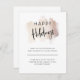 This modern and stylish happy holidays card for small businesses features a trendy, faux rose gold brush stroke and elegant black handwritten script typography on a white background. Add your own holiday thank you message and any special offer for your customers.