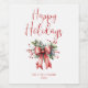 Modern Happy Holidays Script Holly Bow Name Wine Label