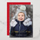 Send holiday cheer with this modern Happy Holidays photo card featuring your favourite vertical picture bordered by delicate snowflurries. “Happy Holidays” is displayed in elegant gold foil script with your family’s name shown beneath. The back features a festive red background with white snow dots, or customise the colour to suit your style. A stylish and elegant holiday design that’s perfect for Christmas greetings.