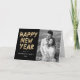Modern Happy New Year Black and Gold 2 Photo Holiday Card