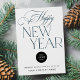 Elegant, trendy typography script custom business logo blue Happy New Year corporate holiday card template with your text and company name.