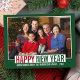 Modern Happy New Year Family Photo Green and Red Holiday Postcard