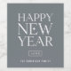 Modern Typography "HAPPY NEW YEAR", star accent serif bold type in white on chic grey colour backing. Framed year and line for your name or business.
