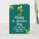 Send heartfelt holiday wishes with this elegant St. Patrick's Day greeting card. Set against a deep teal background with vibrant lime shamrock accents, the front features a festive green top hat with golden coins floating above. alongside the message, "May the Luck of the Irish be with you!" The interior also includes a traditional "May the road rise up to meet you" blessing. With a shamrock bordered design and plenty of space for a personal note, this high-quality card is a thoughtful way to connect with friends and family this March 17th.