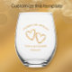 Modern Heart 40th Wedding Anniversary Personalised Stemless Wine Glass
