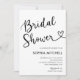 Minimalist Bridal Shower invitation features modern script calligraphy with a heart.