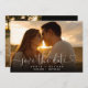 This elegant heart script photo save the date card features your photo and a script save the date above your names, date and venue. The reverse features an additional photo, message, and wedding website QR code on a black background. Designed by Thisisnotme©