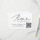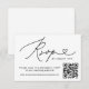 Collect guest replies effortlessly with this elegant RSVP card featuring dramatic flowing script with a sweet heart flourish and a scannable QR code. The bold black calligraphy creates a striking focal point while directing guests to your wedding website for online response. Customize the reply date, QR code, and website URL to fit your timeline.