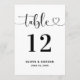 Modern black and white (colors can be modified) wedding table number cards feature a stylish black typography design that includes chic calligraphy script and a heart accent. The simple and elegant custom text that can be personalized with the table number and guest names seated at that particular table. Customize and add each individual table number card needed (1, 2, 3...and so on) to your shopping cart.
