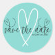 Modern Hearts Turquoise Blue Green Save the Date Classic Round Sticker