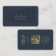 Modern Heavy Equipment Operator Monogram Dark Blue Gold business card with QR code