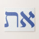 Modern Hebrew Aleph Tav Blue White Typography Jigsaw Puzzle
