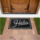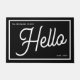Modern Hello Black White Script Family Name Doormat