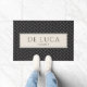 Modern Herringbone Family Name Black Pattern Doormat