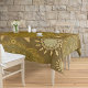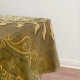 Inspired by Hindu mandala style, this design captures its essence while leaning towards Buddhist and modern influences. Deliberately golden, the colour symbolises harmony between nature's inhabitants, offering a simpler yet captivating modern mandala design. Crafted from 100% cotton with vibrant edge-to-edge printing, this tablecloth is available in various dimensions and made in the USA.