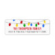 This contemporary return address label features an illustration of strings of bright Christmas lights in red, green, yellow and blue, spanning the top edge. Personalise with your name, address, or other custom text - just use the easy, provided templates!