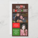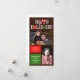 Add your 2 photos and personalised message to this festive colour block photo holiday card with cute letter icons - candy cane p's, ornament o and christmas tree A.