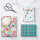Celebrate the season with this colourful and festive gift wrap set, featuring three unique designs. The first wrap showcases a delightful pattern of Christmas ornaments in a cheerful and vibrant colour palette, adding a playful touch to your gifts. The second wrap features whimsical silhouette illustrations and doodles of Christmas trees in aquas and teals, perfect for a modern twist on holiday cheer. The third wrap brings it all together with a cosy plaid pattern, using the same vibrant colours as the ornaments. This set is perfect for adding a mix of charm and style to your holiday presents.