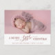 modern holiday and christmas personalised photo new born baby birth announcement card. The text and colours can be edited.