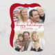 Modern script text overlay for personalised holiday photo collage greeting cards.
