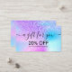 Who doesn't like a good discount?! Treat your customers right with our Modern Holographic design. If you want to change the font style, colour or text placement, simply click the "Customise Further" button. If you need help with the design, please don`t hesitate to contact me!