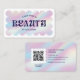 Trendy holographic design beauty business cards with trendy retro style font, scalloped edge in pink and purple gradient hues. This girly and cute beauty salon business card design features a QR code, your name, address and contact details. Perfect for lash techs, beauticians, aestheticians and more!