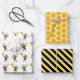Modern Honey Bees with Heart & Honeycomb Pattern Wrapping Paper Sheet