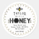 Modern, stylish label for pure, raw honey with a hexagon-inspired border and bee logo with your name in a stylised text. Honey is written in a bold inline font with a hexagon substituted for the letter O.