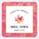 Modern hot colours of bright pink swirled with orange in an artistic watercolor background. Highlighted with faux gold geometric frame. Unique font pairing which is completely customisable (colour, fonts, sizing, personalisation). Accented with watercolor hot pink hibiscus flower.