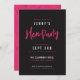 Modern hot pink& black hen party invites with textured pink accents and bold text.