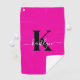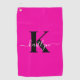 Modern Hot Pink Black Script Monogram Golf Towel