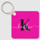 This simple, elegant hot pink keychain with your first name in a trendy script font in white and your first initial in a modern cap font in black is perfect for your keys. It's stylish and modern and yet very classic.