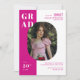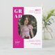 Invite guests to your graduation party with this chic minimal photo graduation party invitation template. The design features one photo, hot pink and white colour palette, and bold modern typography. Personalise it with your details and favourite photo.
