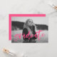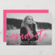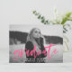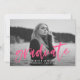 Invite guests to your graduation party in style with our Modern Brushed Script yellow graduation invitations. The unique graduation party invite features 'graduate' in a hot pink modern hand-lettered script font overlay on the front. Add your favourite photo and the graduate's name, school, and graduating year. Add your graduation party details to the back.