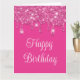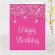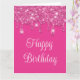 Modern Hot Pink Drips Glitter Happy Birthday Card