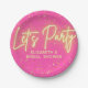 Modern Hot Pink Gold Neon Glowing Let's Party Paper Plate