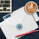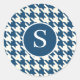 Modern Houndstooth Blue & White Monogram Classic Round Sticker