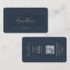 Modern Housekeeping Housekeeper Professional Monogram Dark Blue business card with QR code